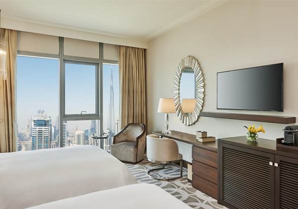 ドバイのホテルではのホテルではホテルの宿泊料金とは別に、ホテルのグレードにより1泊1室あたり AED7~AED20 のツーリズムディルハム(宿泊税)のお支払いが必要です。ツーリズムディルハムは、ベッドルームの数に対して課金される為、3ベッドルームの場合3部屋分、2ベッドルームの場合は2部屋分、スイートタイプと1ベッドルームは1部屋分が課金されます。現地ホテルに直接お支払いください。