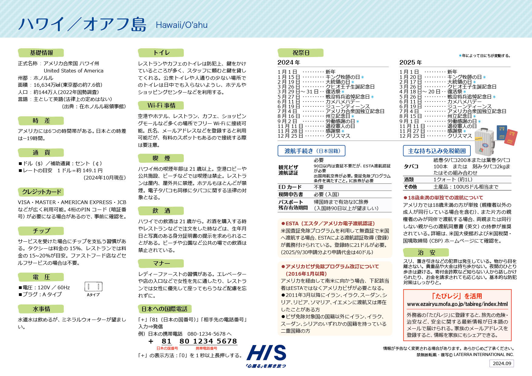 - ※上記データは予告なく変更となる場合があります。ご旅行前に最新情報を必ずご確認ください。