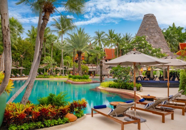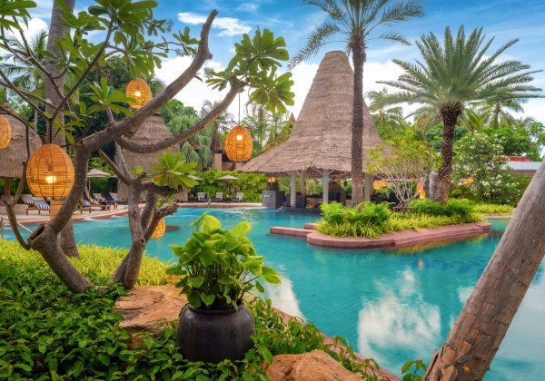 【Wi-Fi全館無料】【全館禁煙】タイの伝統的な村のように、広大な敷地に緑生い茂る自然の中にヴィラとラグーンルーム棟が設置されています。全室バルコニーつきで南国らしいトロピカルガーデンやホアヒンの美しい海や敷地ナイのラグーンを見渡せるのもリゾートならでは。タイの建築様式とエレガントでエキゾチックなインテリアを取り入れた客室、ベッドルームにある広いバスタブやオープンエアのスパも魅力です。