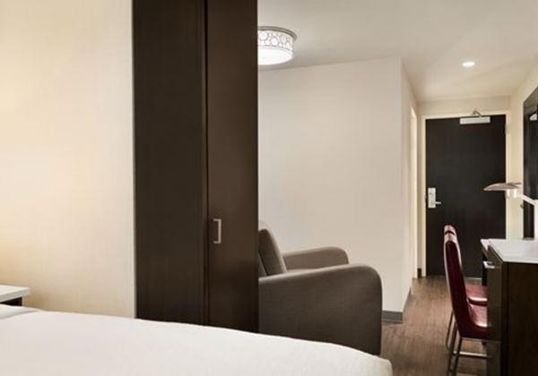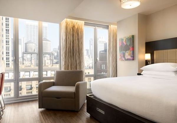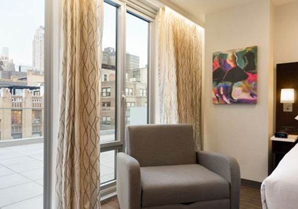 【Wi-Fi一部の公共エリア無料】【全館禁煙】この39階建てのホテルは、象徴的なガラスのファサードからニューヨークの素晴らしい景色を眺めることができます。タイムズスクエア、エンパイアステートビルディング、5番街ショッピングへは徒歩ですぐです。 ペンステーションから1.1kmほどの距離です。スタジオスイートはエレガントで、多くはソファ付きのセミプライベートリビングエリアがあり、一部の客室はバルコニー付きでシティビューがお楽しみ頂けます。さらに、ミニ冷蔵庫や電子レンジ、コーヒーメーカーが備わっています。館内では、24時間営業のフィットネスセンター、ビジネスセンターなどご利用いただけます。【宿泊年齢制限について】代表者の方が21歳以上より宿泊可能です。詳細は「ホテルからのお知らせ」をご確認下さい。旧:Embassy Suites by Hilton New York Midtown Manhattan